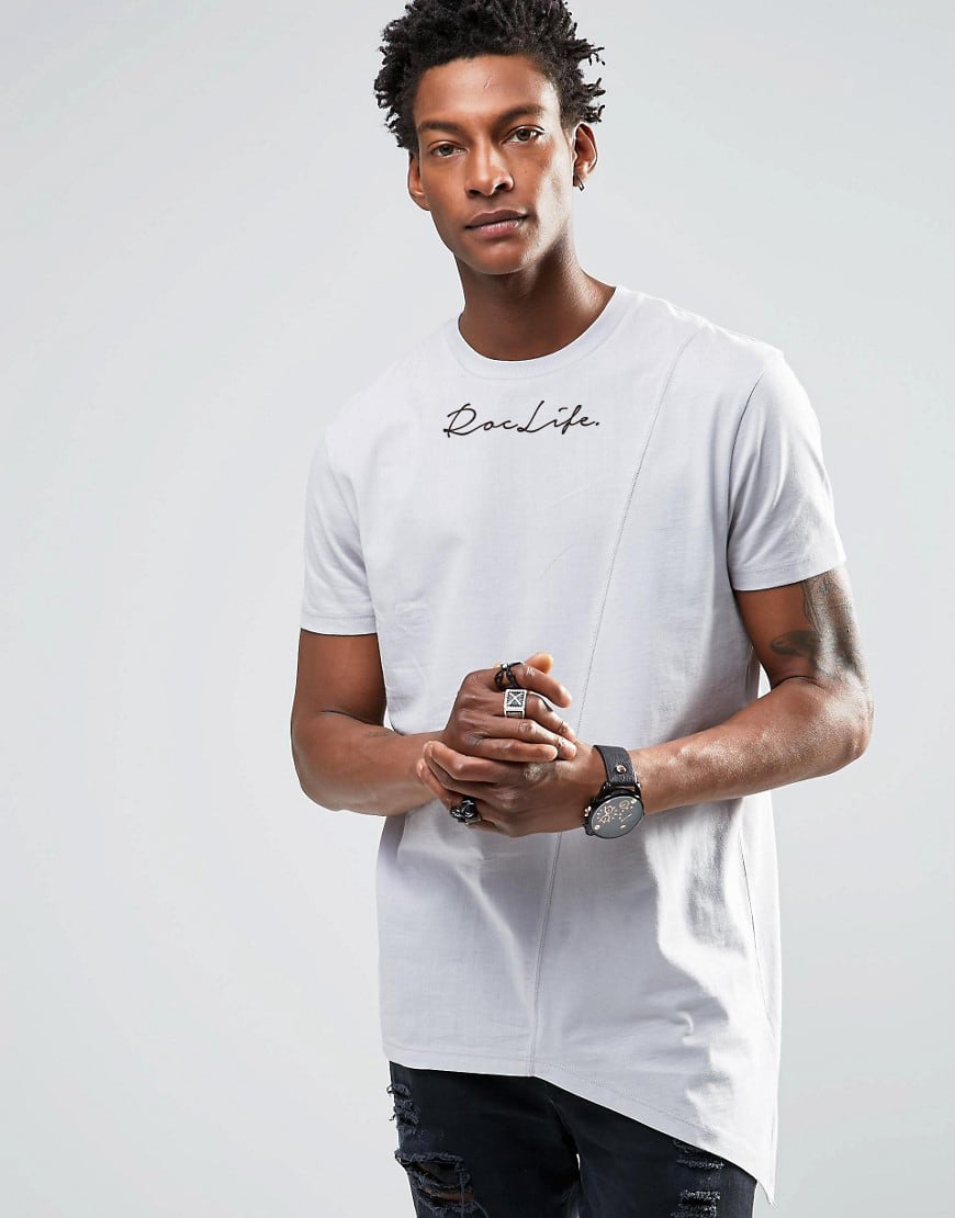 【RocLife "BASIC"】メンズ アシンメトリー Tシャツ(ライトグレー)