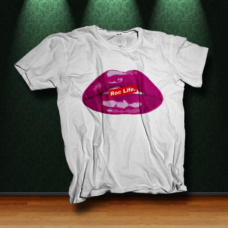 【Roc Life】の定番Tシャツです。ホワイトボディにインパクトのある唇をデザインしたTシャツです。